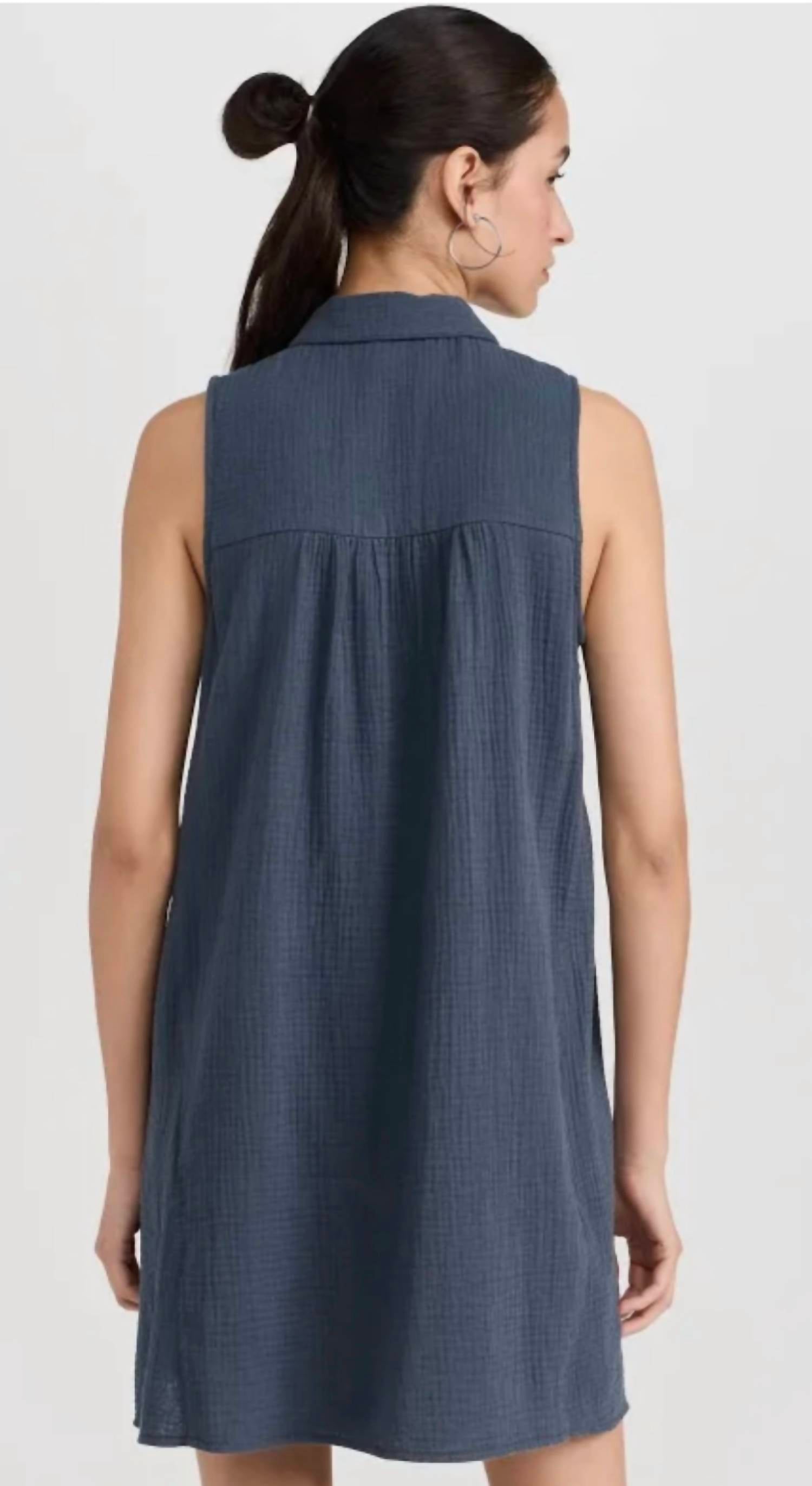 Combine com suas sandálias favoritas para um visual chique e descontraído. Decote redondo. Fecho de botões. Sem mangas. Bolsos frontais.