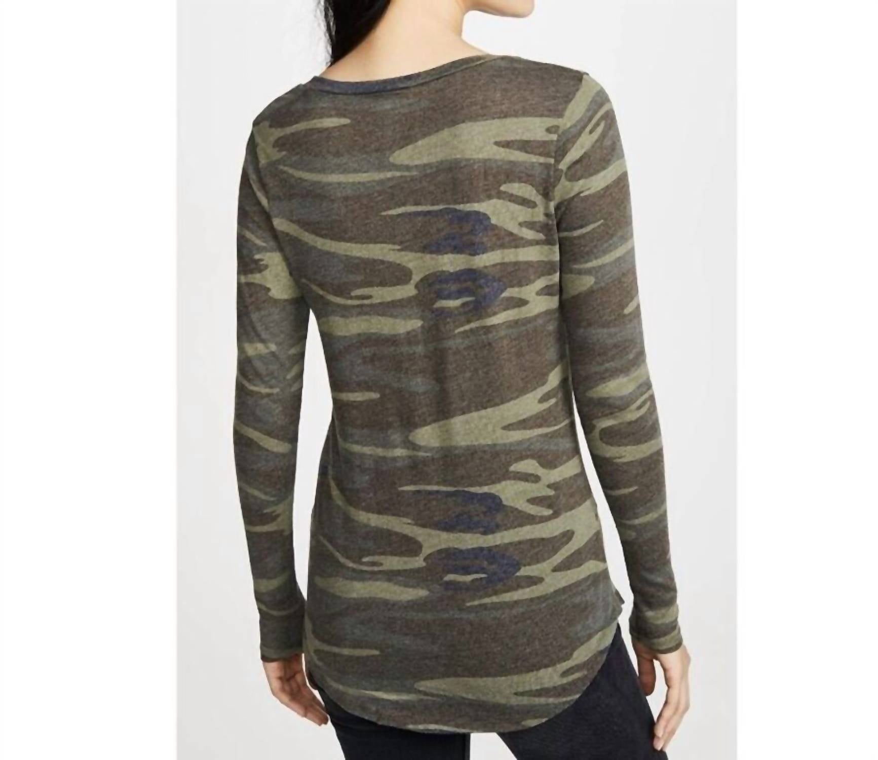 Caimento perfeito, design charmoso, tecido macio. Você vai adorar tudo nesta camiseta de manga comprida. 52% algodão, 40% poliéster, 8% rayon. Comprimento até a cintura com bainha curva. Decote em V e mangas compridas. Bolso aplicado no peito. Lavar com água fria. Importado da China.