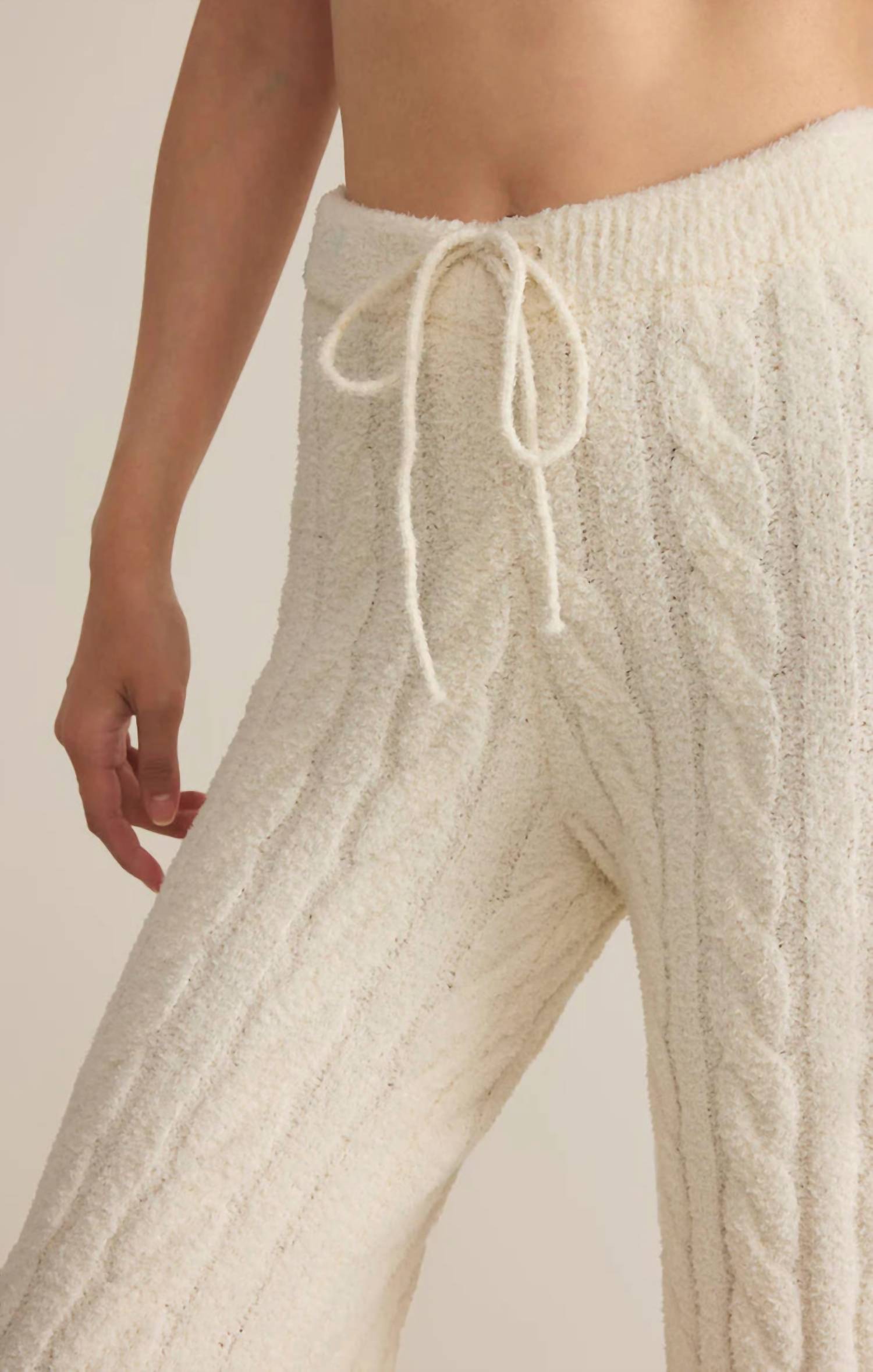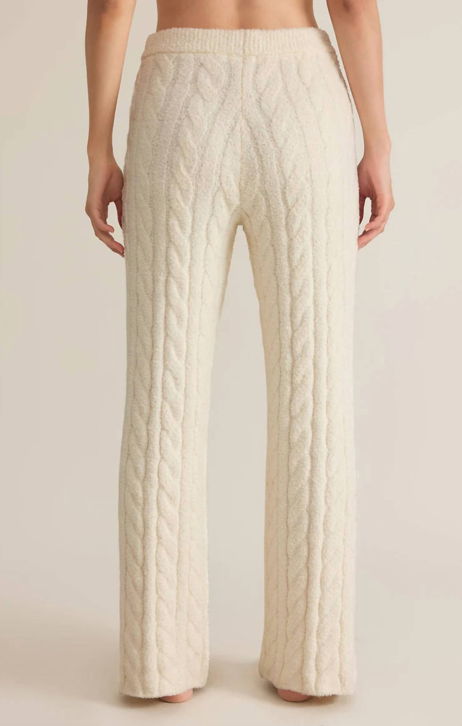 Embrace stylish comfort with the Paige Cable Knit Pants by Z Supply in serene Sea Salt. These high-rise wide-leg pants are crafted from luxurious Marshmallow Yarn, composed of 100% polyester, offering a plush feel for all-season coziness. With a relaxed regular fit and pull-on closure, they feature a full-length design and an elastic waistband for added convenience. Perfect for those who appreciate both style and comfort with a touch of sophisticated ease.