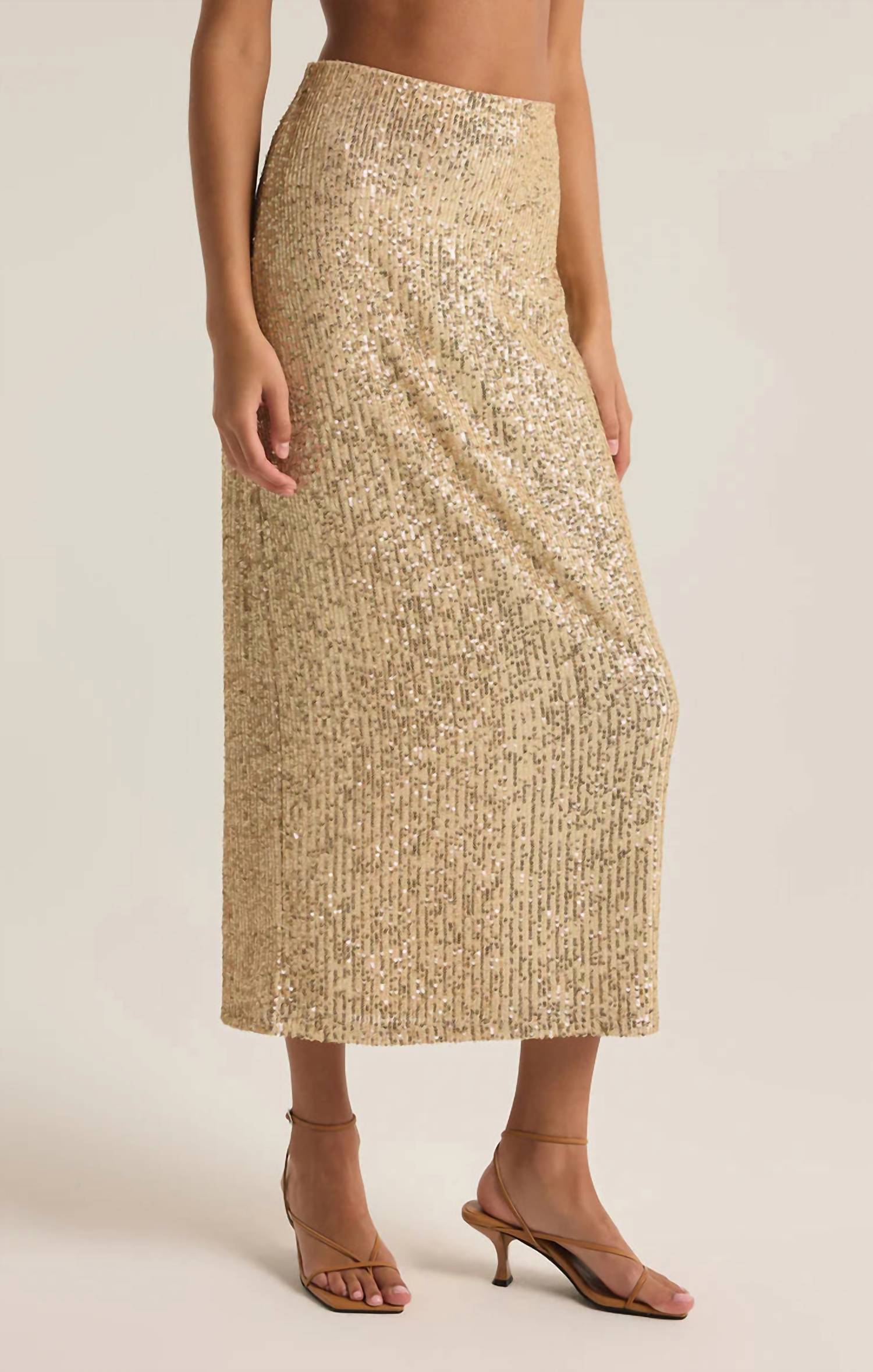 Coloque sua camiseta favorita dentro desta saia de comprimento midi para um visual descolado e descontraído. Brilhe sem esforço com a Saia Saturn Sequin da Z Supply, criada para embelezar seu guarda-roupa festivo. Esta saia midi, em um elegante tom champanhe, apresenta um corte justo e um deslumbrante tecido Stretch Sequin, composto por 92% poliéster e 8% elastano. Projetada para ser confortável, ela possui um fecho de puxar, garantindo uma silhueta sem costuras. Perfeita para o dia e para a noite, sua composição totalmente forrada promete conforto a cada movimento.
