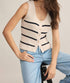 Introducing the Sycamore Stripe Sweater Vest by Z Supply, a chic addition to your wardrobe in a serene Sea Salt hue. This sleeveless piece is crafted from a cotton linen blend, comprising 80% cotton and 20% linen, with a flattering scoop neck and a modern button-up style. Its versatile design allows for solo wear or layering, reflecting both contemporary and vintage aesthetics. Length from shoulder: S – 20", with bust measurements for S at 26". Care: Hand wash, line dry. Model is 5'10" wearing size S.