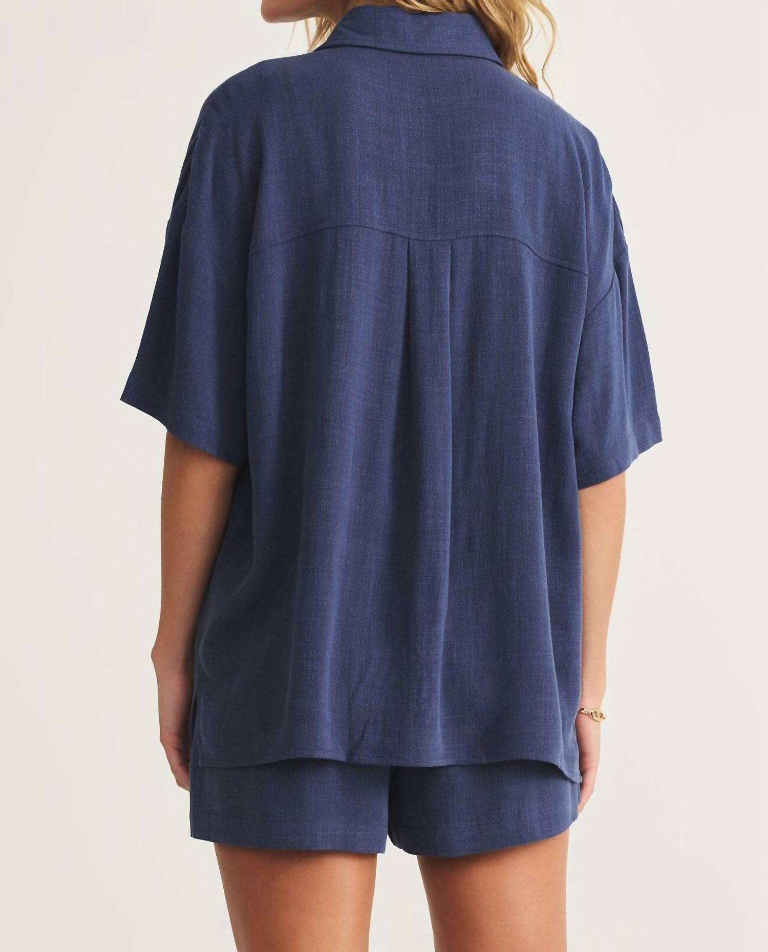 A camisa de botões Tinsley da Z Supply na cor Azul Iate oferece um estilo chique e descontraído com sua gola clássica e fecho de botão. Possui mangas compridas e uma composição de 86% rayon e 14% linho, proporcionando um toque suave e de peso médio. Os comprimentos variam de 62 cm a 66 cm para um caimento relaxado, complementados por fendas laterais práticas e um bolso frontal grande. A modelo tem 1,75 m e veste tamanho P, com medidas de busto para tamanho P de 114 cm.