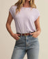 Embrace minimalist elegance with the Whisper Top by Z Supply, crafted for comfort and style in a soothing Lavender Ice hue. This short sleeve blouse in a relaxed fit is made from Whisper Knit Jersey, a blend of 50% Cotton, 40% Polyester, and 10% Rayon. The pull-on style is adorned with subtle shoulder shirring, enhancing its feminine charm. Care for it easily with a machine wash on a cold, gentle cycle and hang to dry.